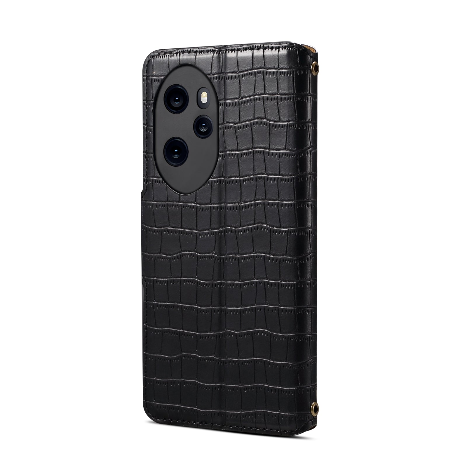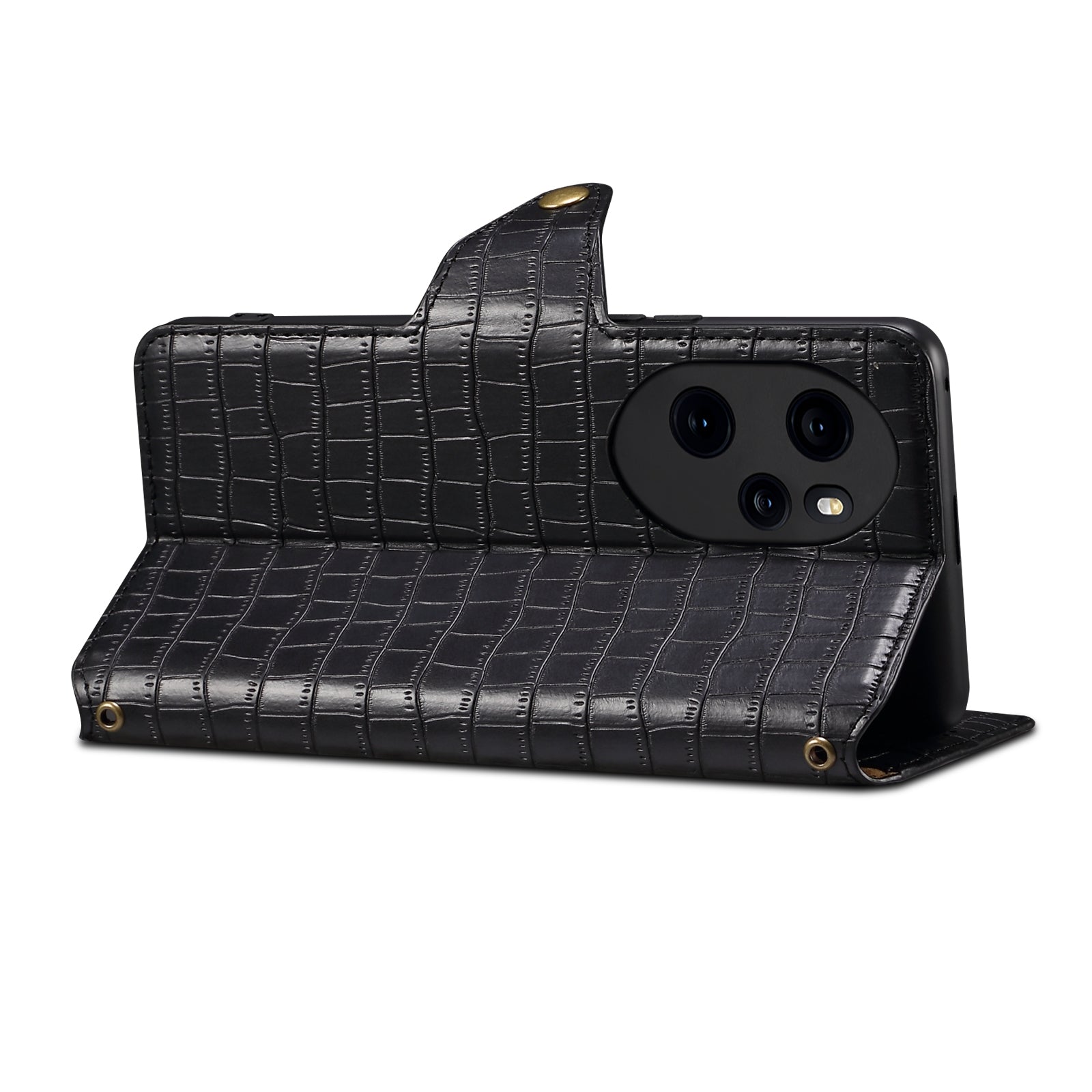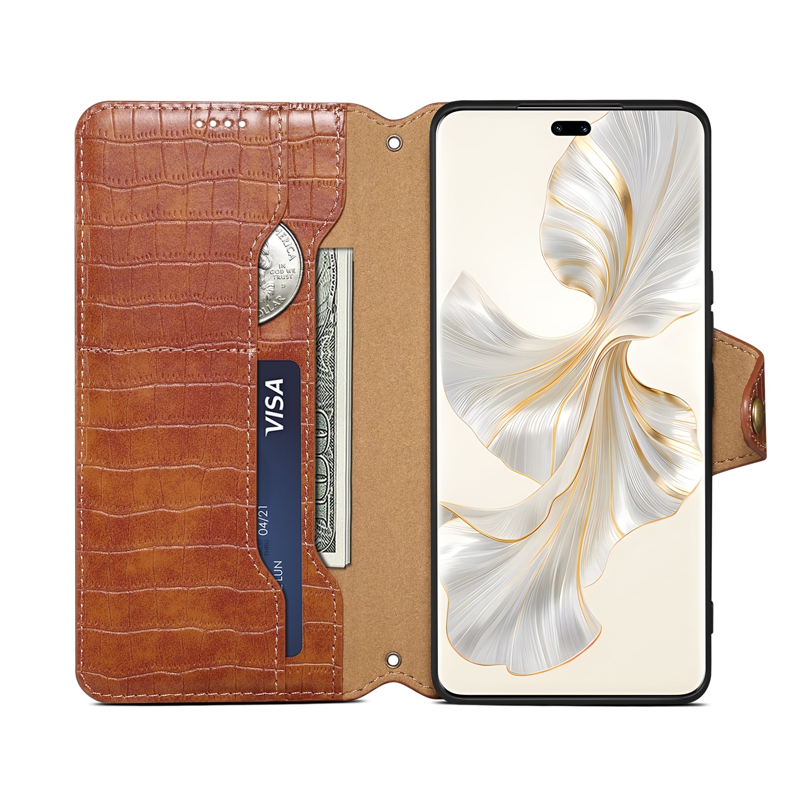 Honor 100 Pro Denior Crocodile Texture Oil Edge Leather Phone Case with Card Wallet and Kickstand