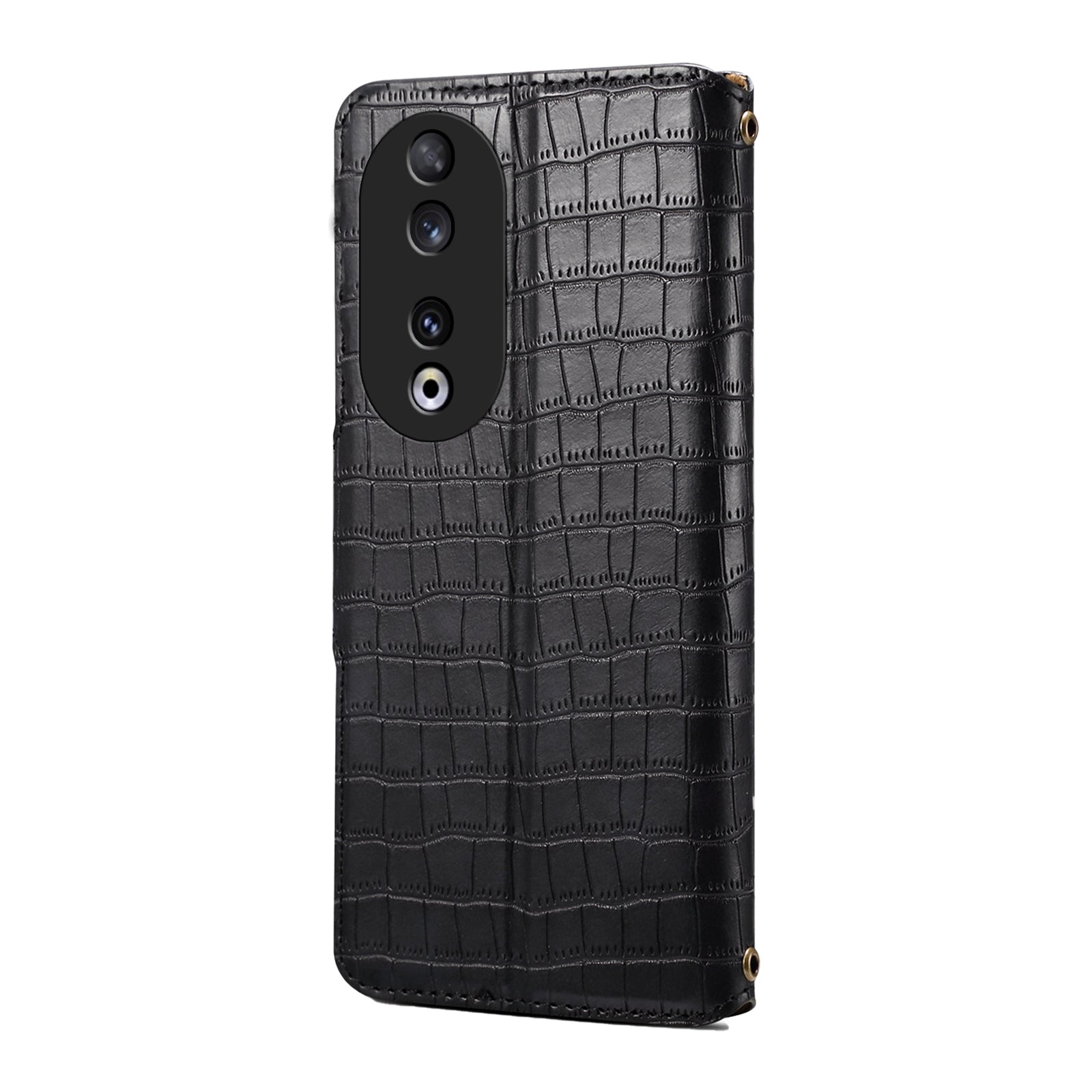 Honor 90 Denior Crocodile Texture Oil Edge Leather Phone Case with Card Wallet and Kickstand