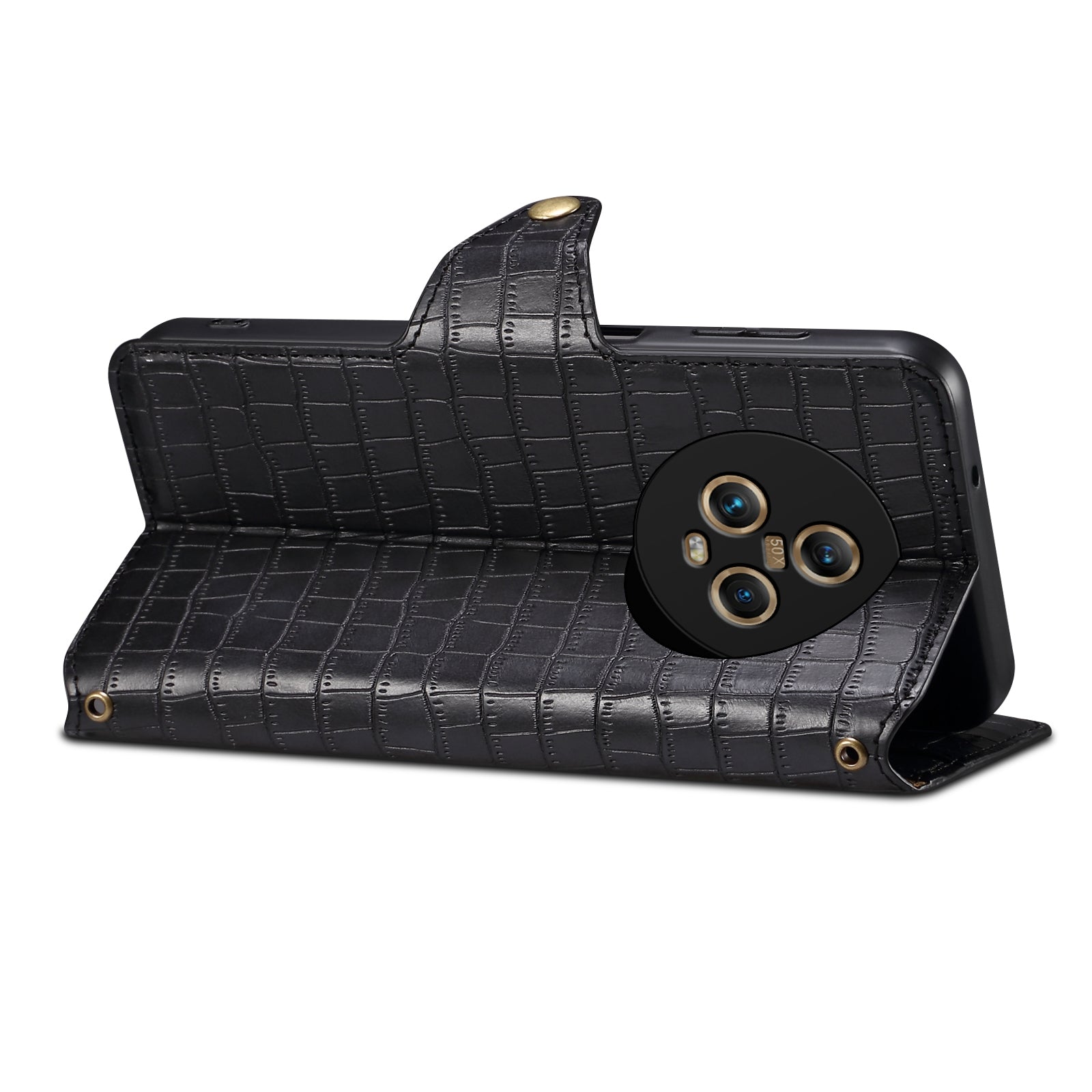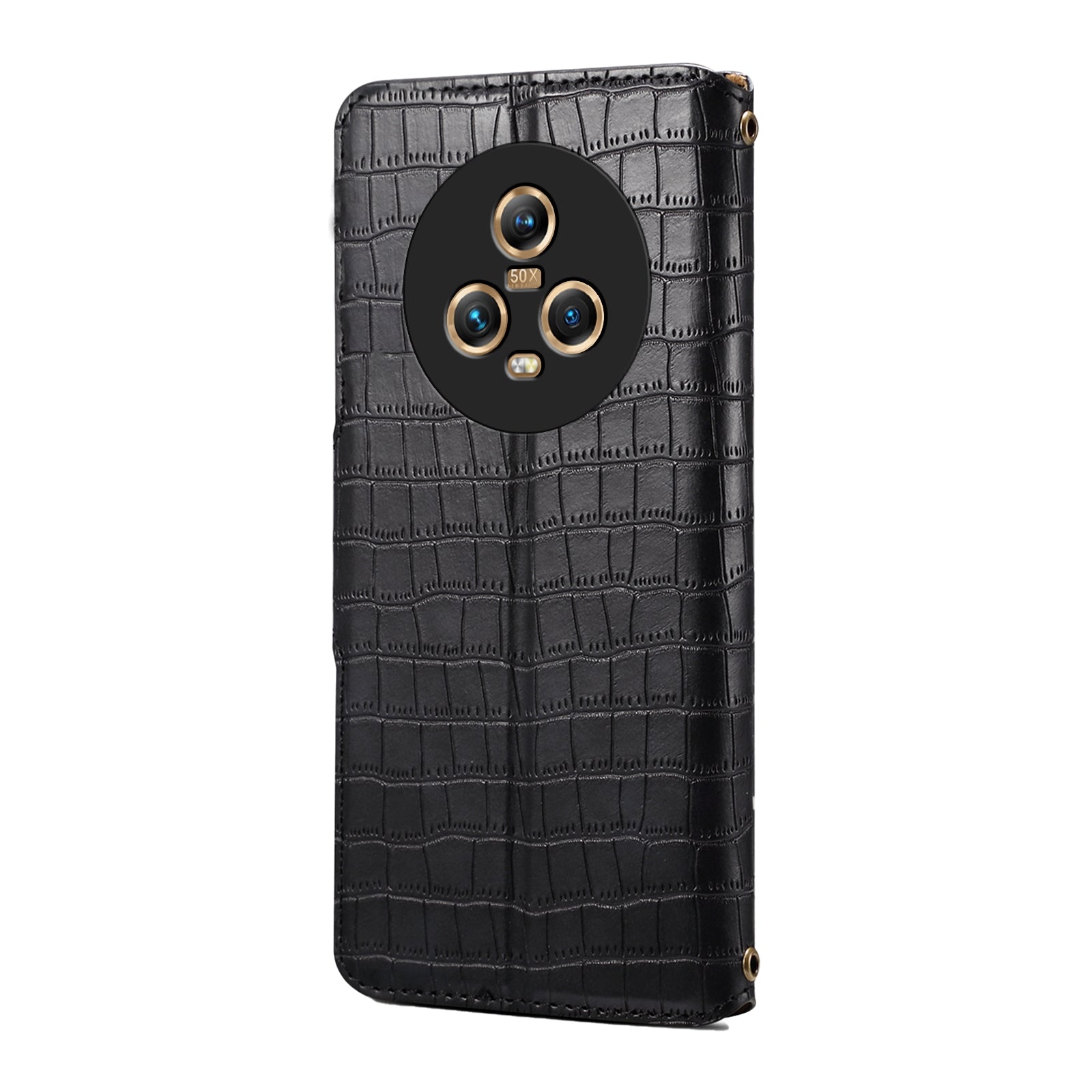 Honor Magic5 Denior Crocodile Texture Oil Edge Leather Phone Case with Card Wallet and Kickstand