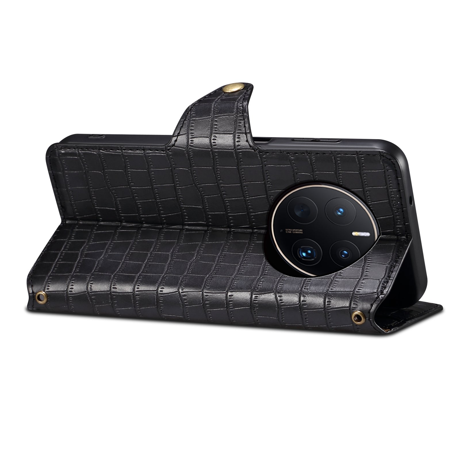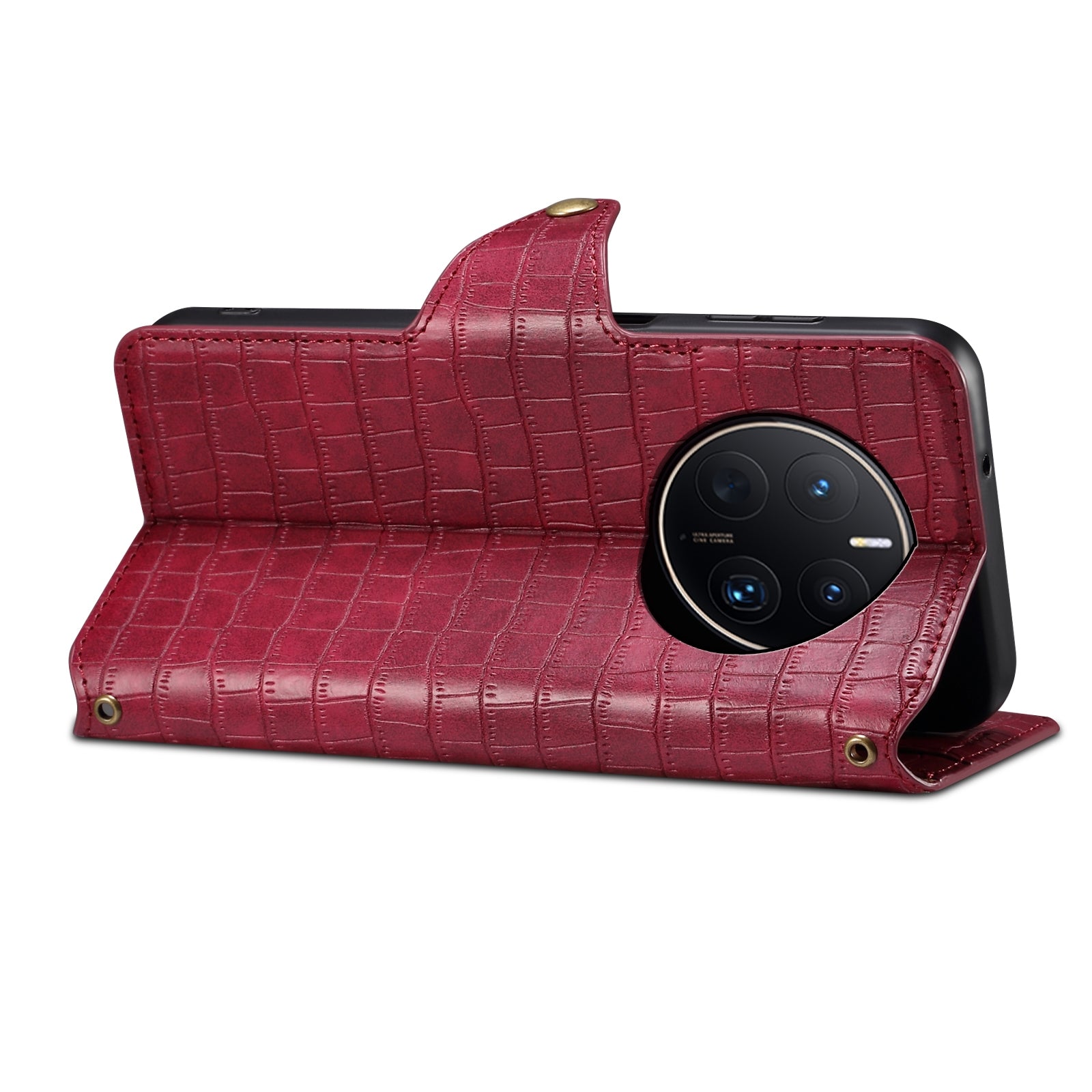Huawei Mate 50 Pro Denior Crocodile Texture Oil Edge Leather Phone Case with Card Wallet and Kickstand