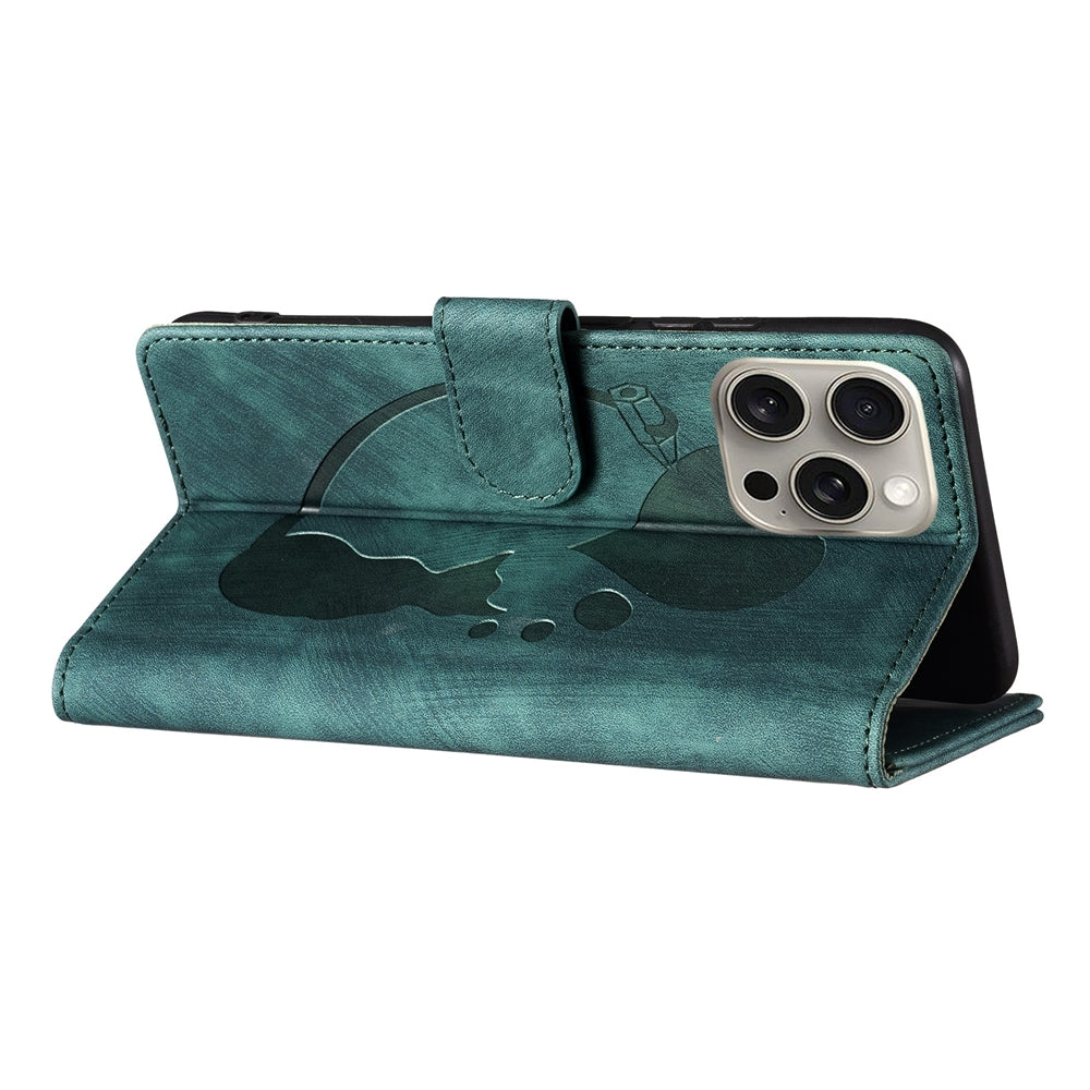 iPhone 15 Pro Max Pen Heart Cat Embossed Leather Phone Case with Wear-Resistant TPU+PU, Lightweight Wallet Stand Function, and Precise Cutouts for Ultimate Protection