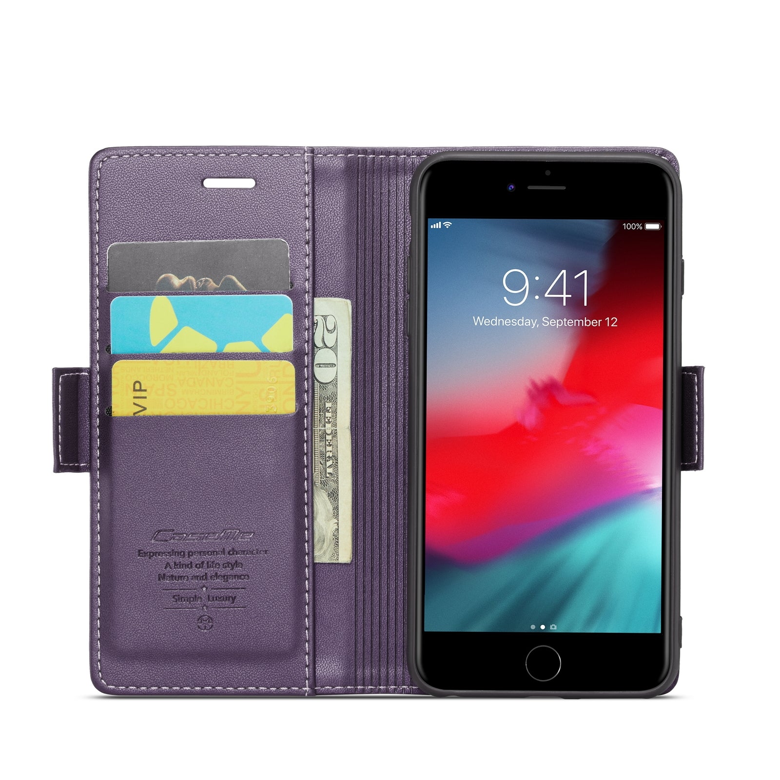 Experience premium protection and modern style with this iPhone 8 Plus Litchi Texture RFID Anti-theft Leather Phone Case. The butterfly buckle closure, convenient wallet features, and stand design blend both fashion and function for your daily life.