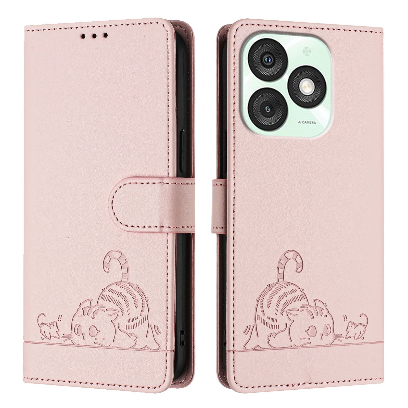 itel A50 Cat & Rat Embossed RFID Leather Case, Lanyard, Wallet, Card Slots, Kickstand, Anti-Fall, Scratch-Resistant