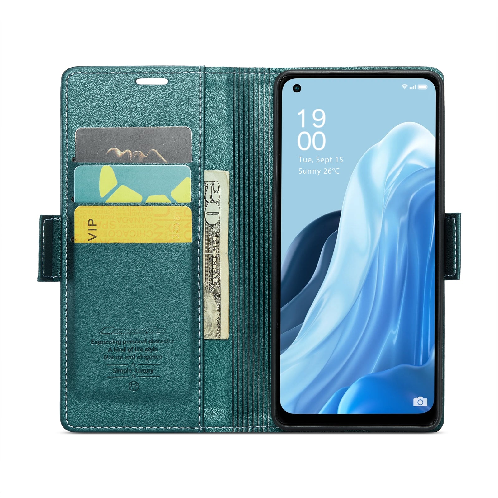 OPPO F21 Pro 4G Litchi Texture RFID Anti-theft Leather Phone Case with Butterfly Buckle, Stand & Card Wallet with TPU Shell