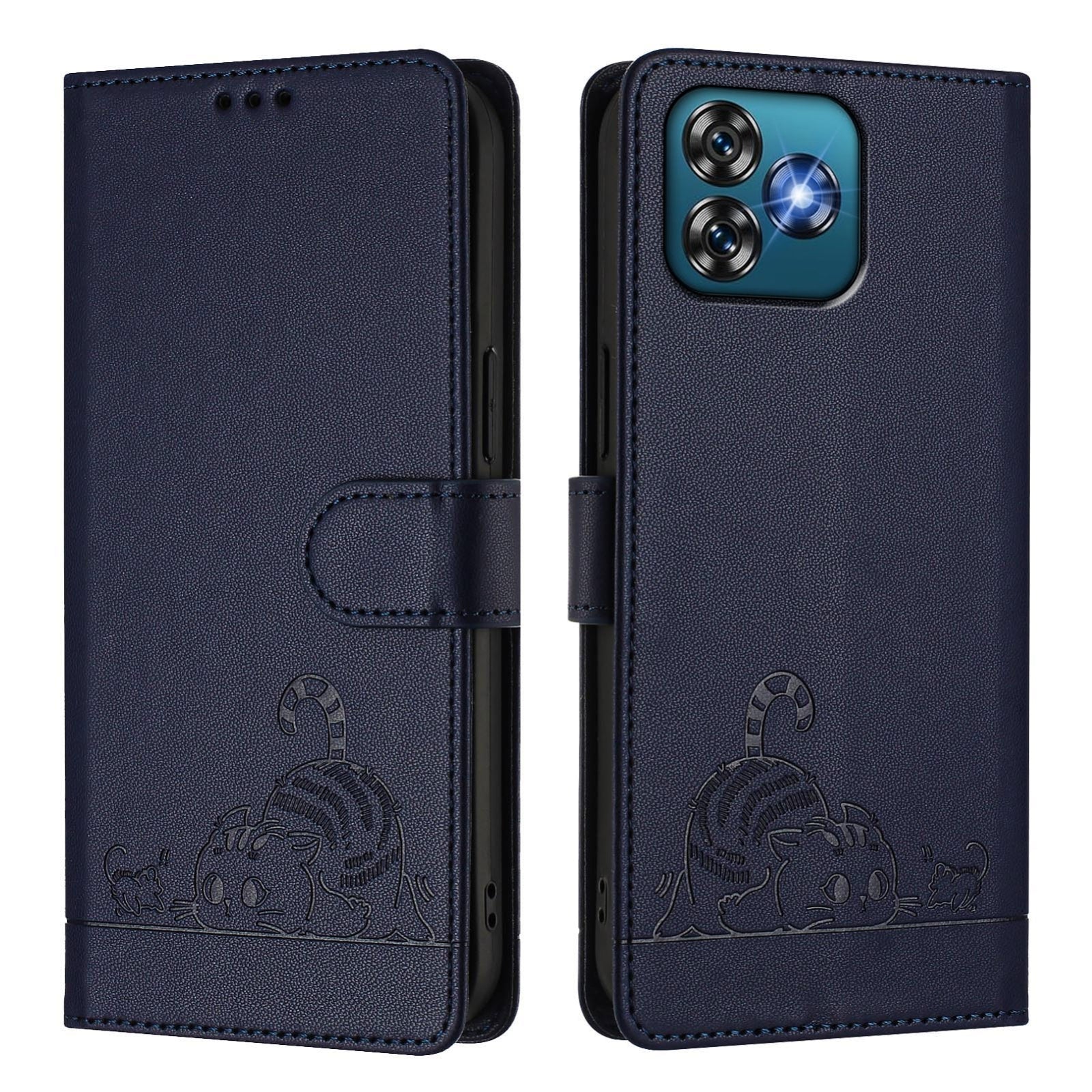 Oukitel C53 Cat & Rat Embossed RFID Leather Case, Lanyard, Wallet, Card Slots, Kickstand, Anti-Fall, Scratch-Resistant