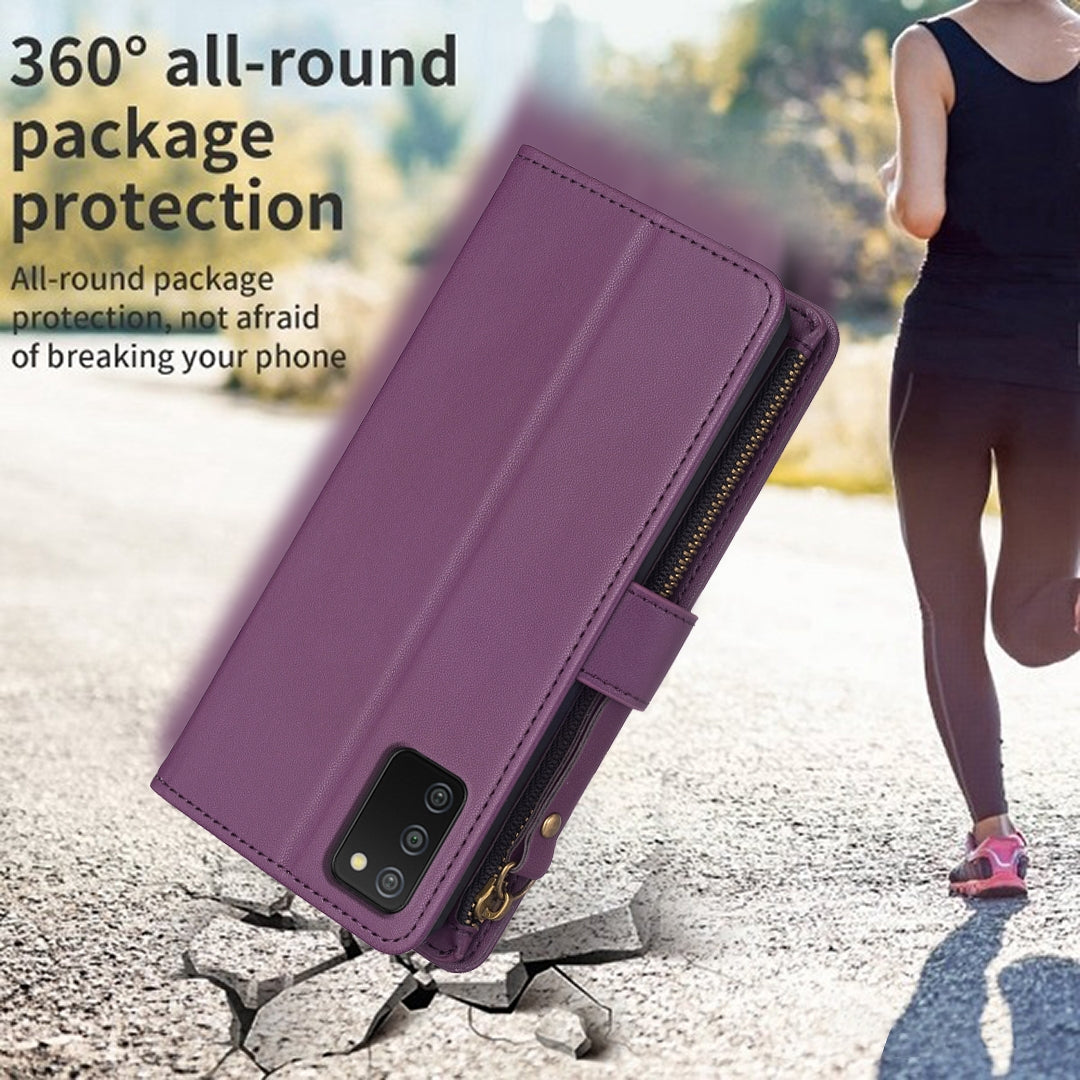 Samsung Galaxy A03s Leather Flip Phone Case with 9 Card Slots, Zipper Wallet & Detachable Wristlet Strap