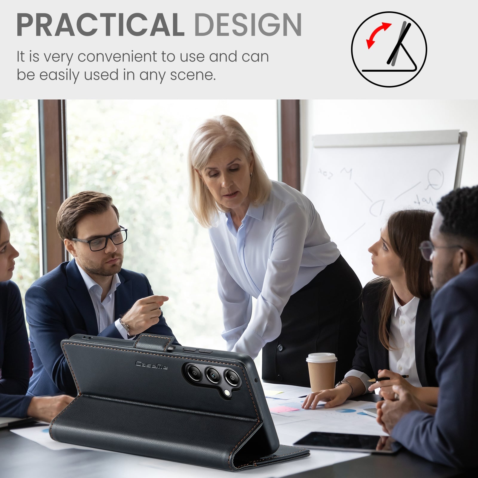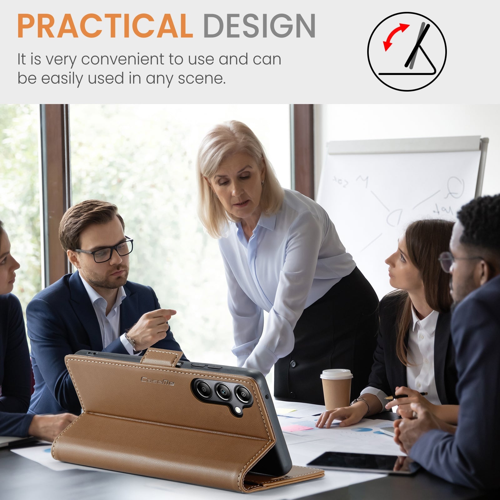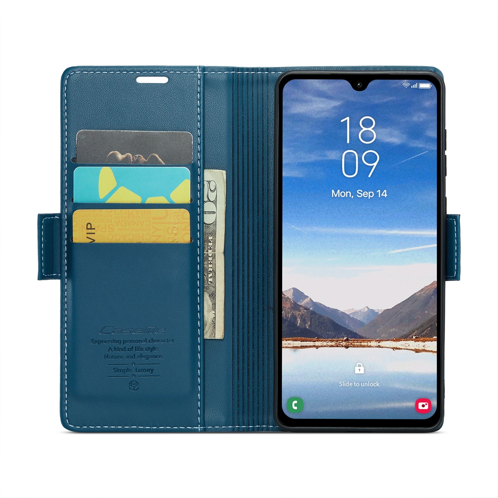 Experience premium protection and modern style with this Samsung Galaxy A05s Litchi Texture RFID Anti-theft Leather Phone Case. The butterfly buckle closure, convenient wallet features, and stand design blend both fashion and function for your daily life.