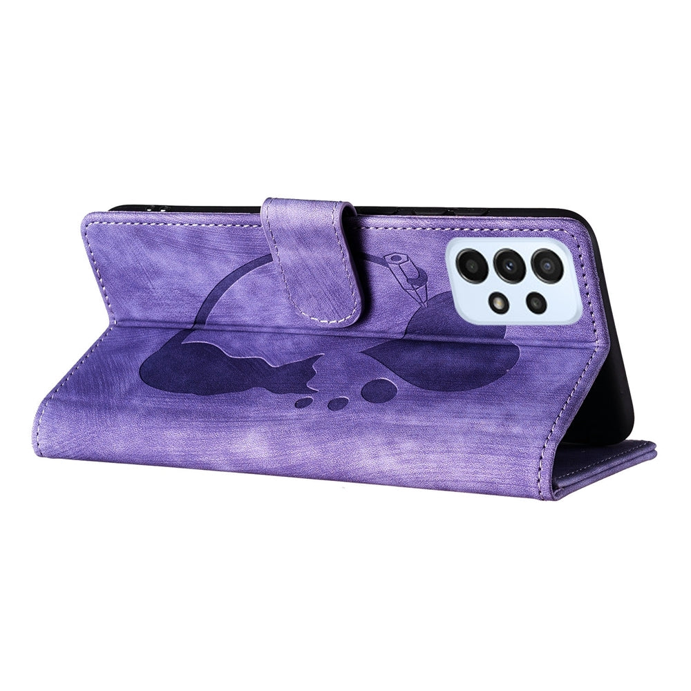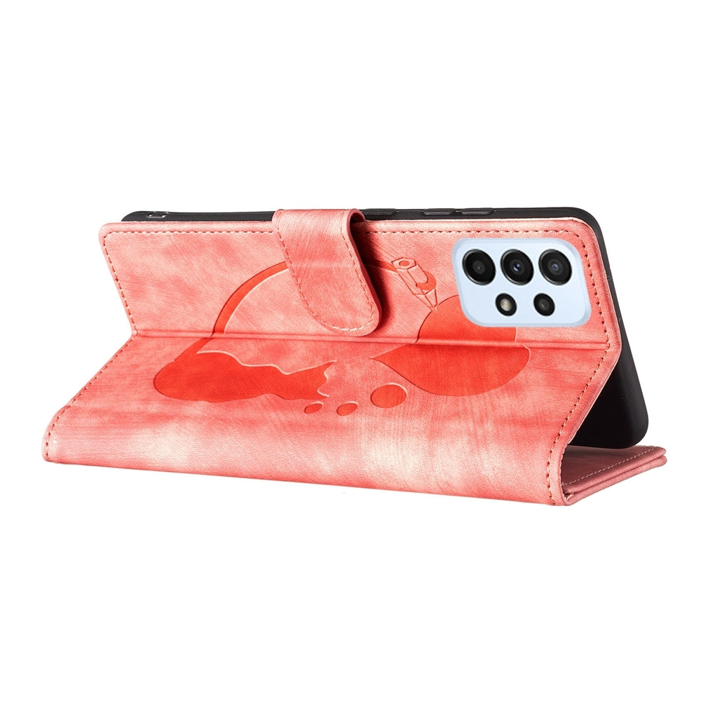 Samsung Galaxy A23 5G Pen Heart Cat Embossed Leather Phone Case with Wear-Resistant TPU+PU, Lightweight Wallet Stand Function, and Precise Cutouts for Ultimate Protection