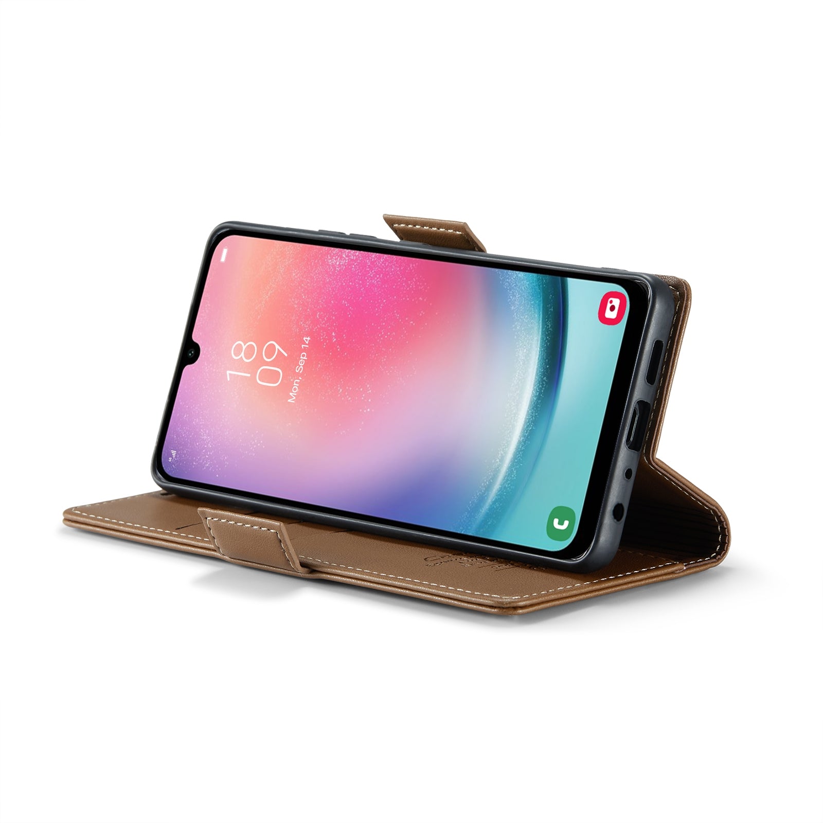 Experience premium protection and modern style with this Samsung Galaxy A24 4G Litchi Texture RFID Anti-theft Leather Phone Case. The butterfly buckle closure, convenient wallet features, and stand design blend both fashion and function for your daily life.