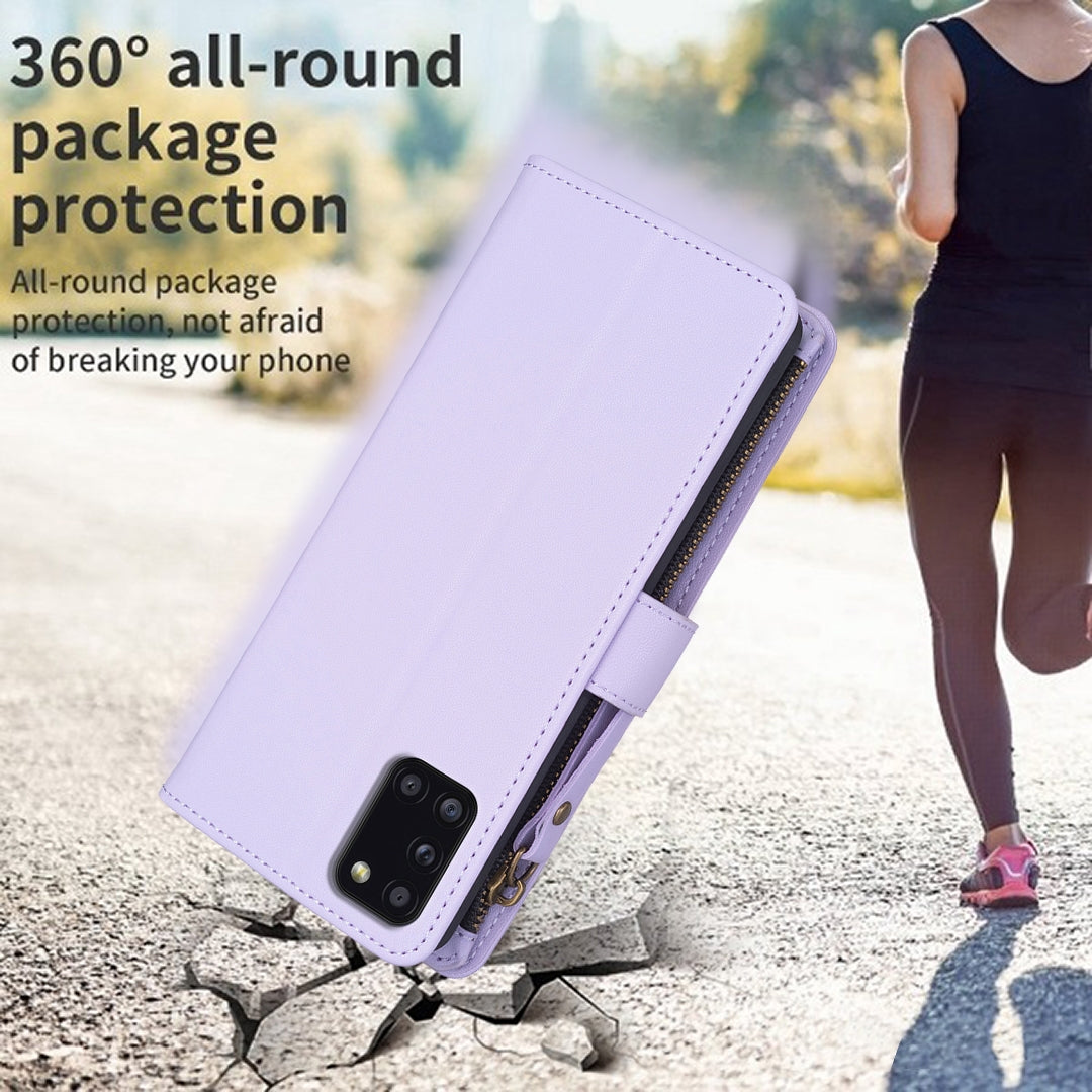 Samsung Galaxy A31 Leather Flip Phone Case with 9 Card Slots, Zipper Wallet & Detachable Wristlet Strap