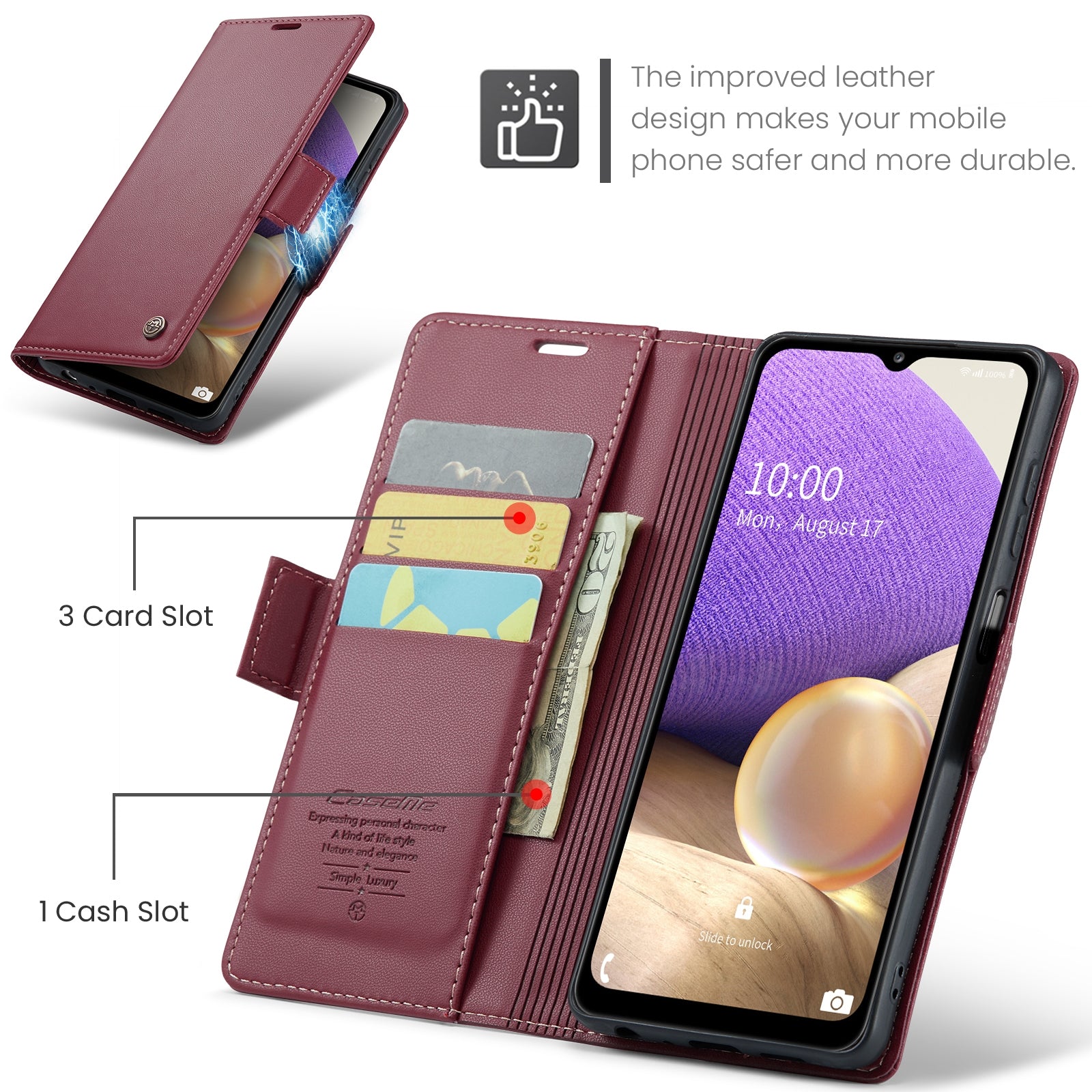 Experience premium protection and modern style with this Samsung Galaxy A32 5G Litchi Texture RFID Anti-theft Leather Phone Case. The butterfly buckle closure, convenient wallet features, and stand design blend both fashion and function for your daily life.