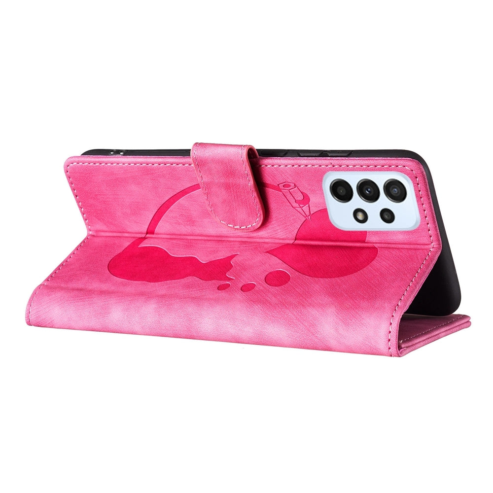 Samsung Galaxy A33 5G Pen Heart Cat Embossed Leather Phone Case with Wear-Resistant TPU+PU, Lightweight Wallet Stand Function, and Precise Cutouts for Ultimate Protection