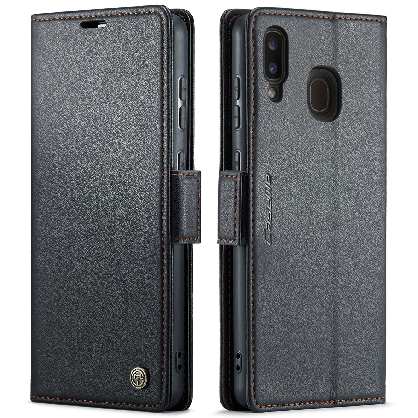 Experience premium protection and modern style with this Samsung Galaxy A40 Litchi Texture RFID Anti-theft Leather Phone Case. The butterfly buckle closure, convenient wallet features, and stand design blend both fashion and function for your daily life.