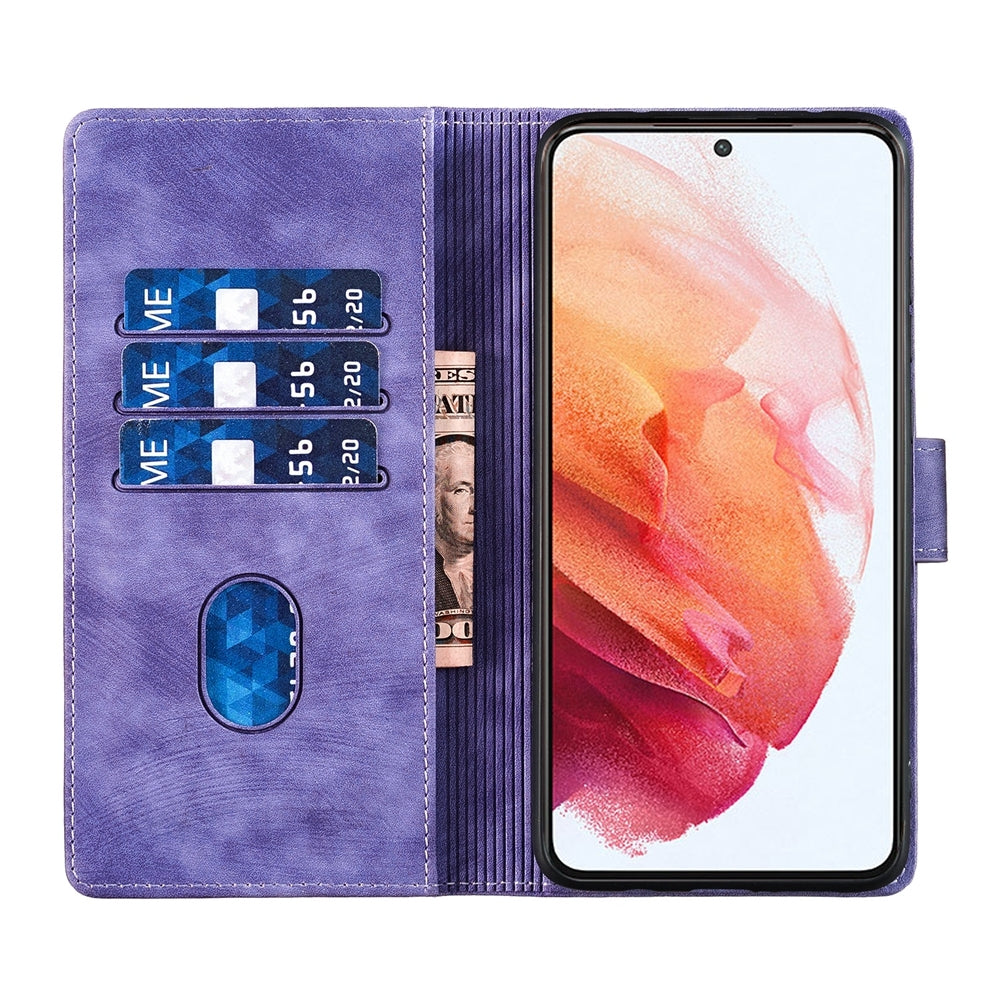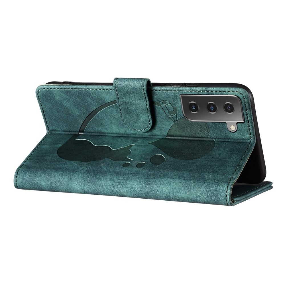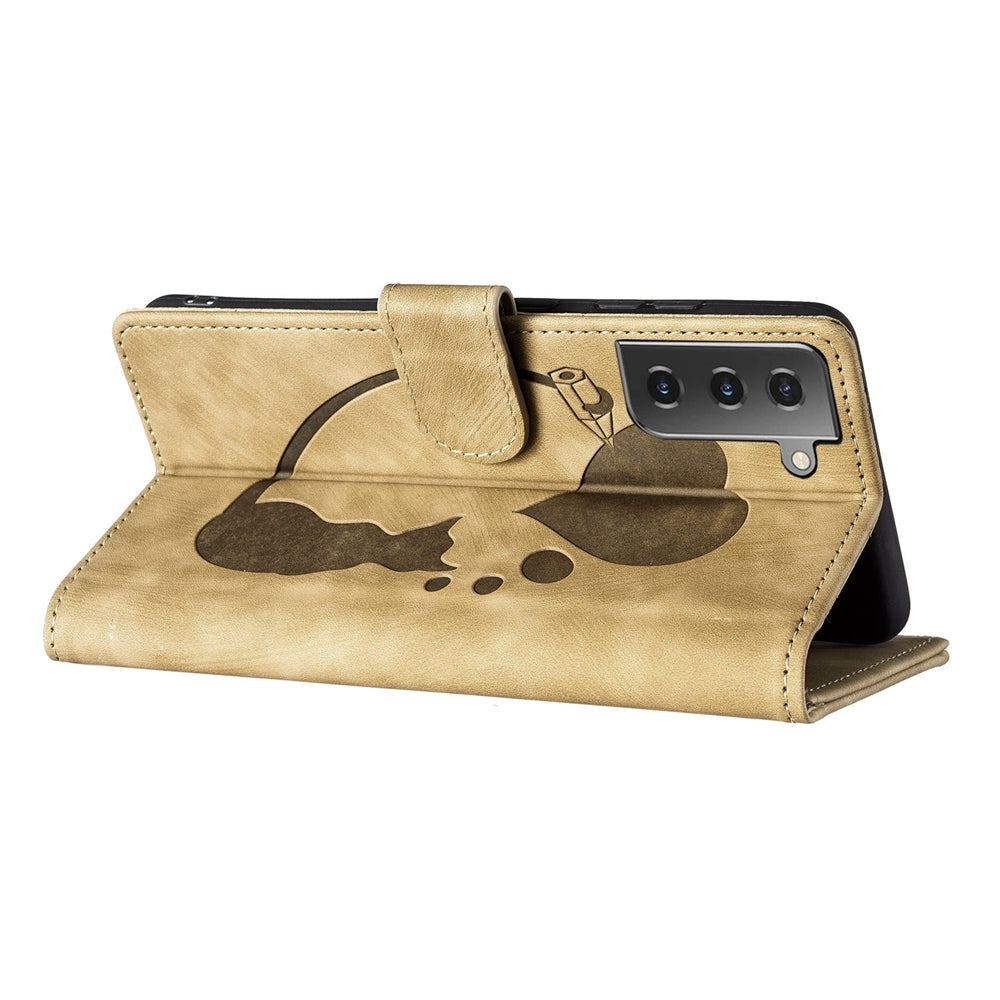 Samsung Galaxy S21 5G Pen Heart Cat Embossed Leather Phone Case with Wear-Resistant TPU+PU, Lightweight Wallet Stand Function, and Precise Cutouts for Ultimate Protection