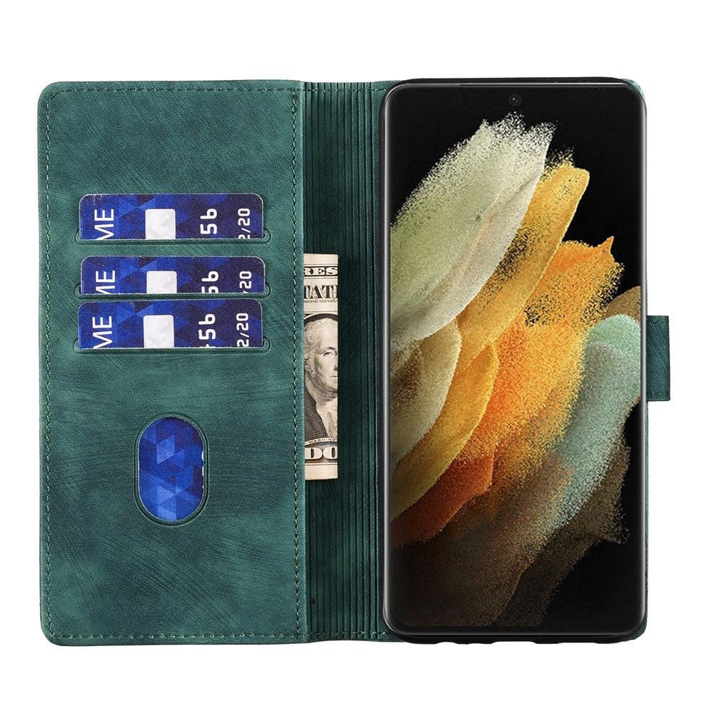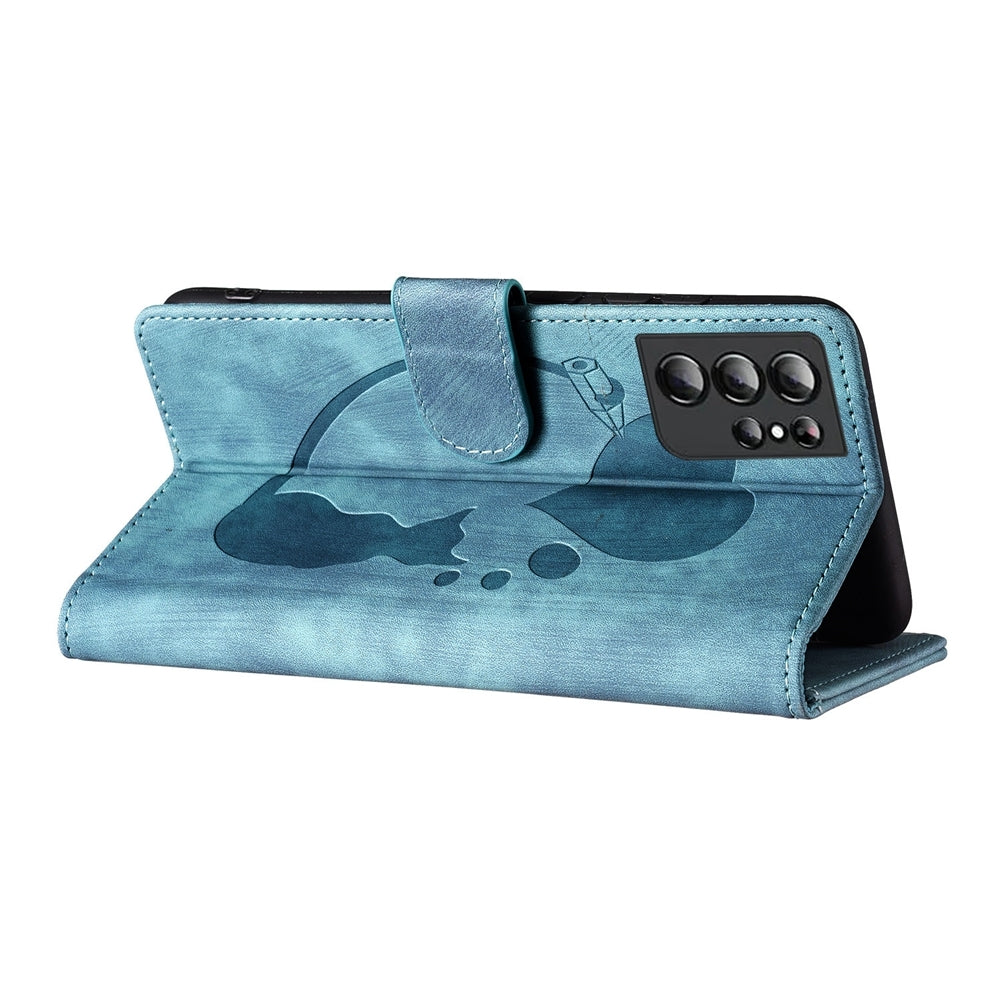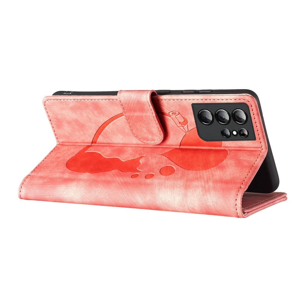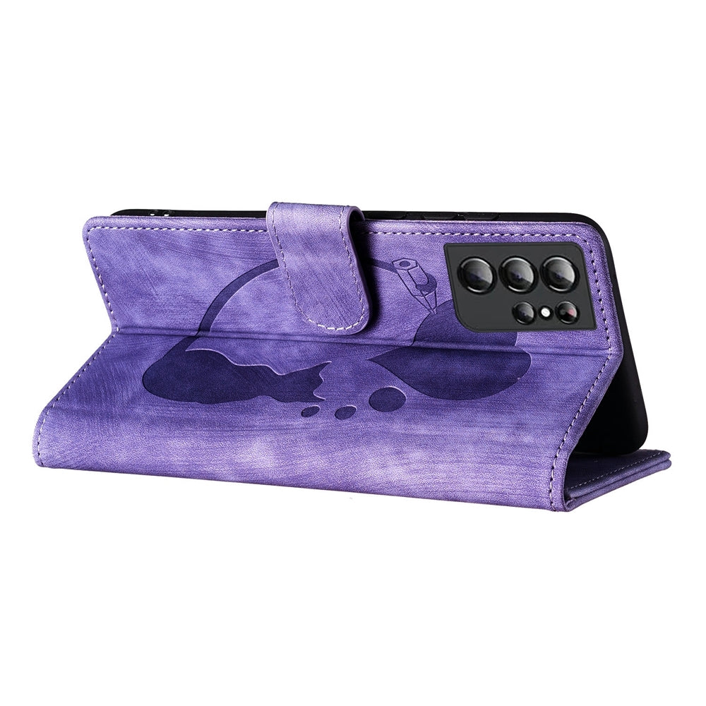 Samsung Galaxy S21 Ultra 5G Pen Heart Cat Embossed Leather Phone Case with Wear-Resistant TPU+PU, Lightweight Wallet Stand Function, and Precise Cutouts for Ultimate Protection