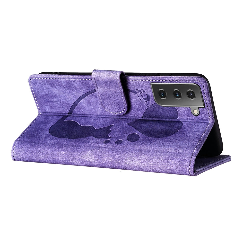 Samsung Galaxy S22 5G Pen Heart Cat Embossed Leather Phone Case with Wear-Resistant TPU+PU, Lightweight Wallet Stand Function, and Precise Cutouts for Ultimate Protection
