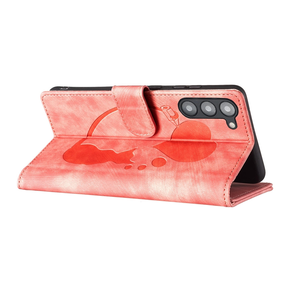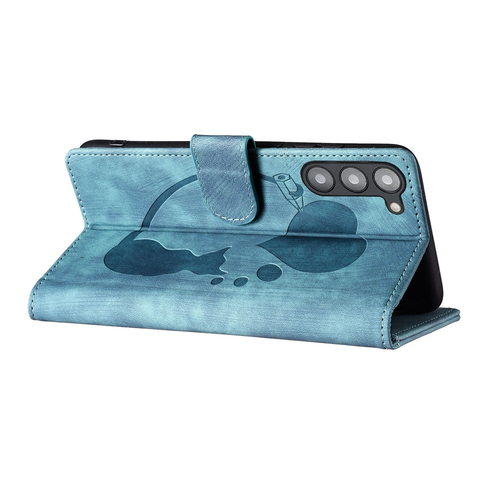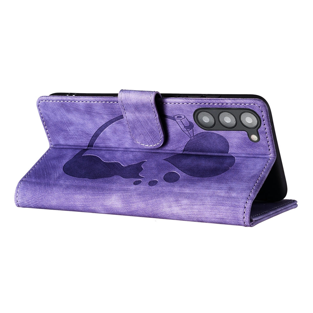 Samsung Galaxy S23 5G Pen Heart Cat Embossed Leather Phone Case with Wear-Resistant TPU+PU, Lightweight Wallet Stand Function, and Precise Cutouts for Ultimate Protection
