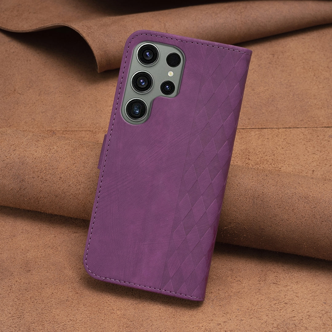 Samsung Galaxy S24 Ultra 5G Plaid Embossed Leather Phone Case – Premium Wallet Kickstand & Shock Absorption for Durable Protection