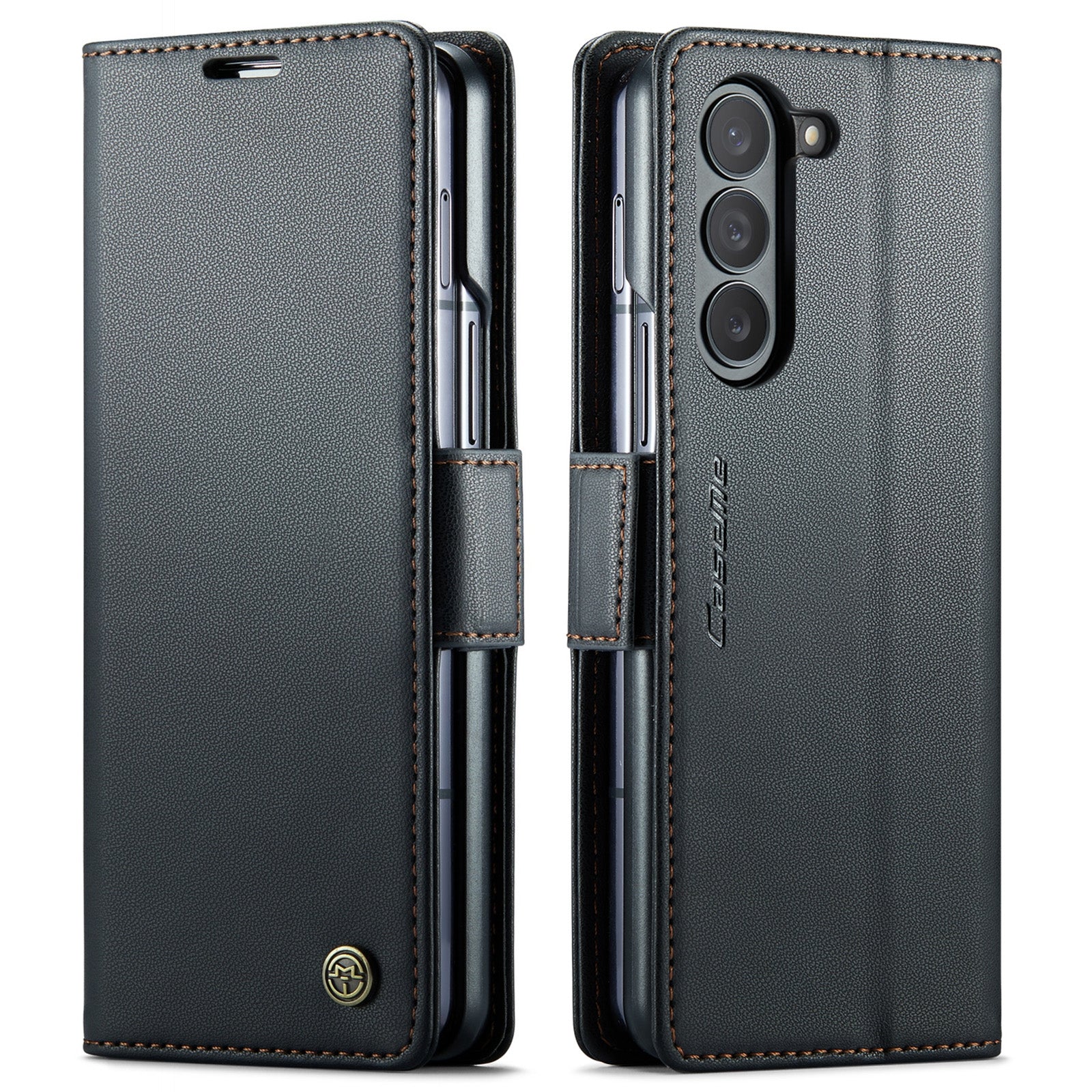 Experience premium protection and modern style with this Samsung Galaxy Z Fold5 Litchi Texture RFID Anti-theft Leather Phone Case. The butterfly buckle closure, convenient wallet features, and stand design blend both fashion and function for your daily life.