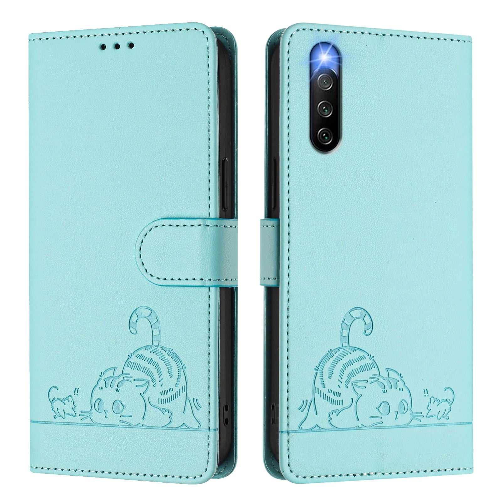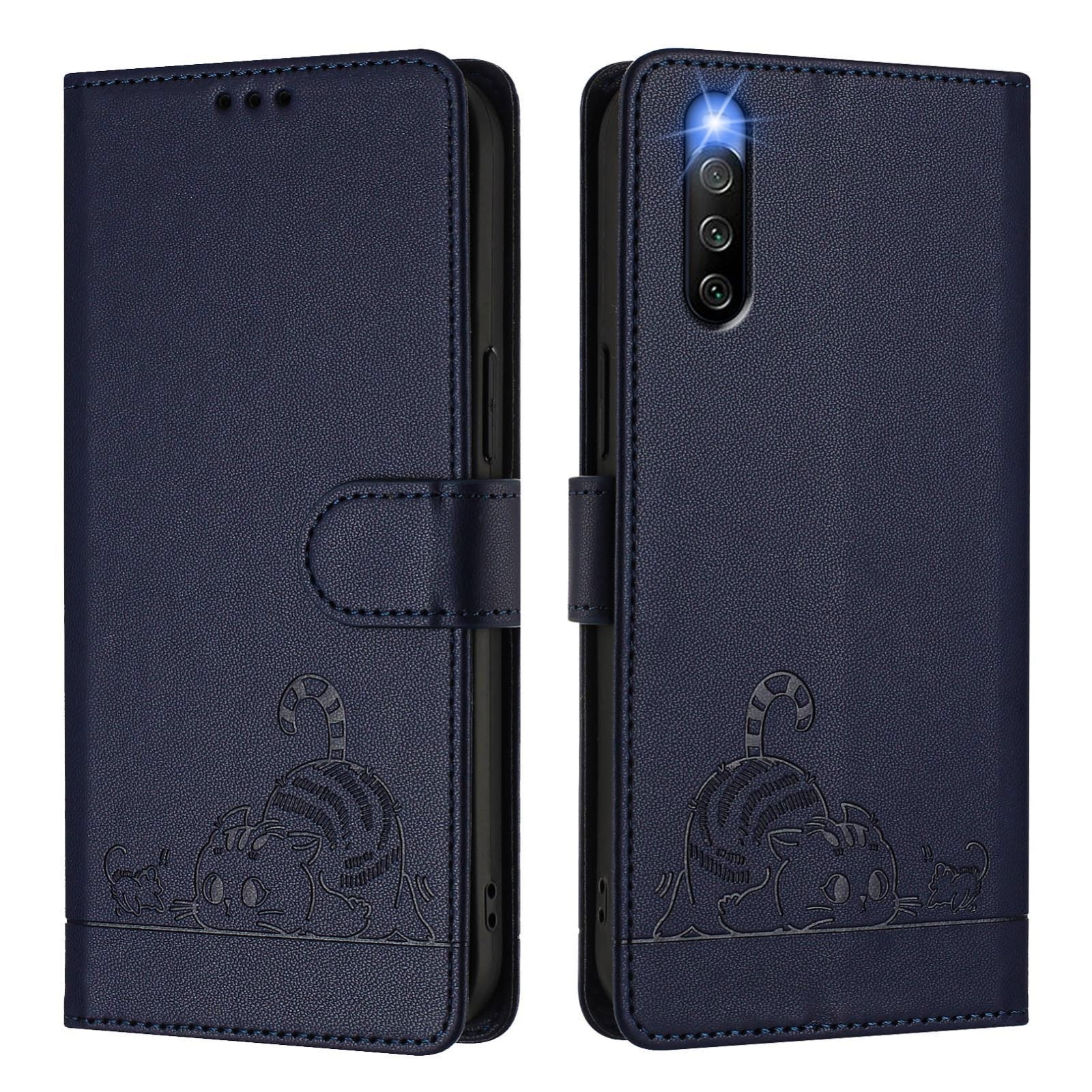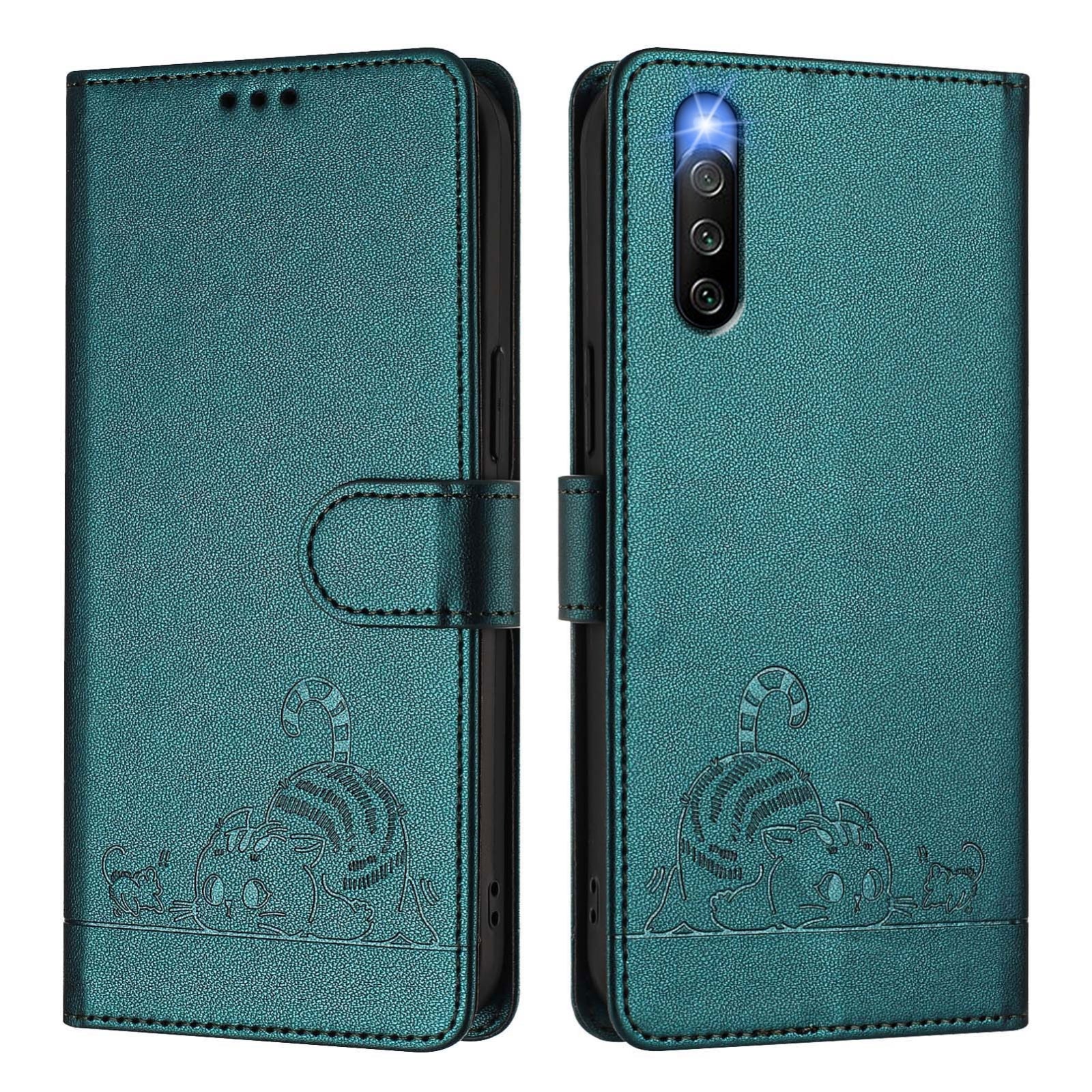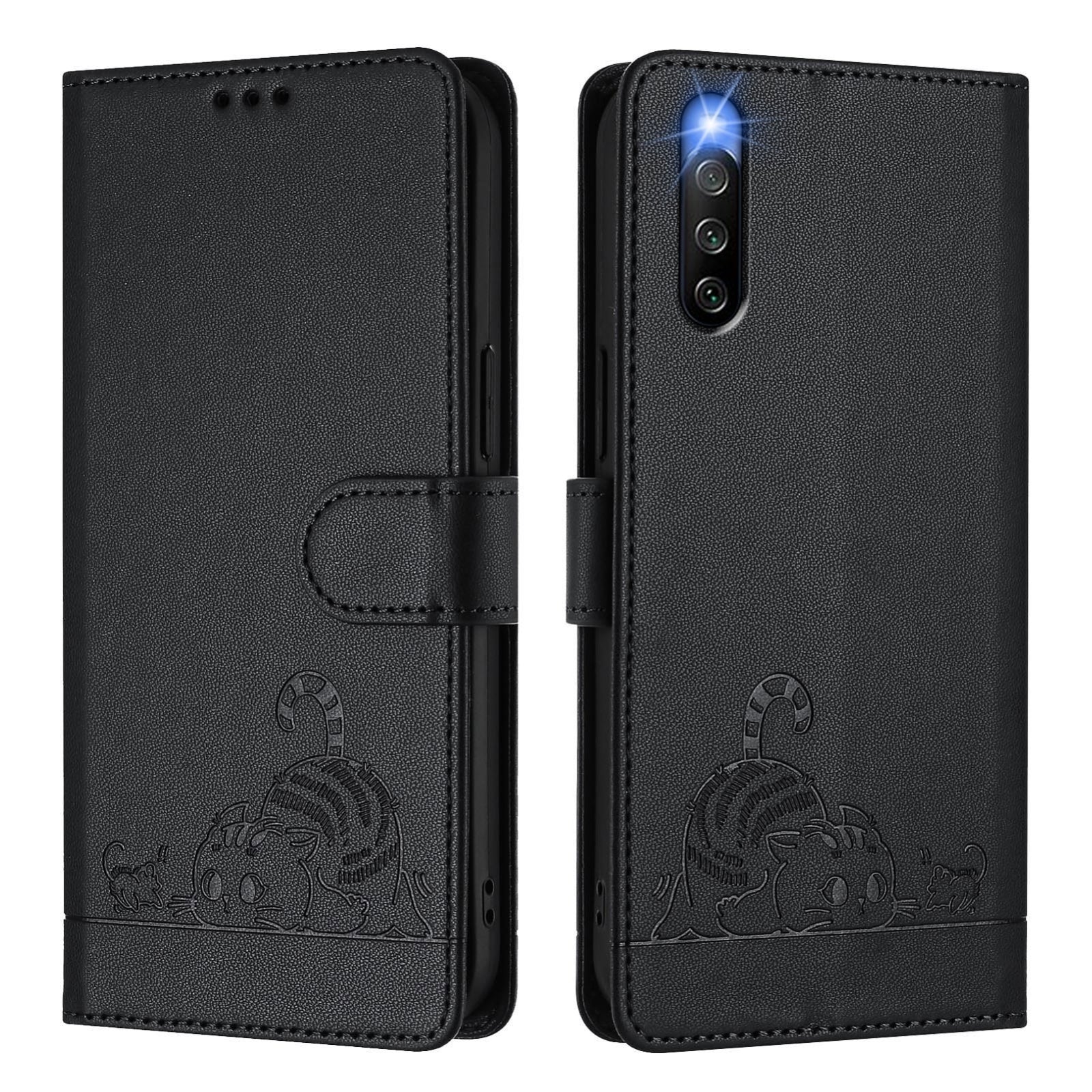 Sony Xperia 10 IV Cat & Rat Embossed RFID Leather Case, Lanyard, Wallet, Card Slots, Kickstand, Anti-Fall, Scratch-Resistant