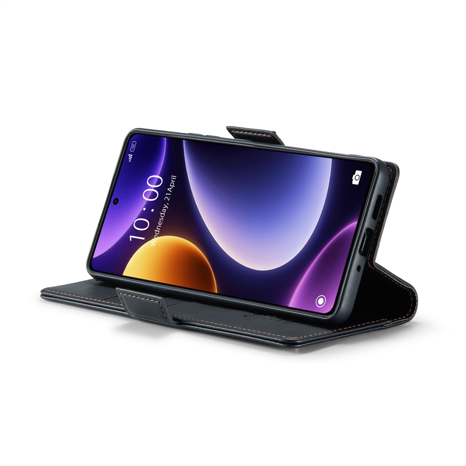 Experience premium protection and modern style with this Xiaomi Poco F5 5G Litchi Texture RFID Anti-theft Leather Phone Case. The butterfly buckle closure, convenient wallet features, and stand design blend both fashion and function for your daily life.