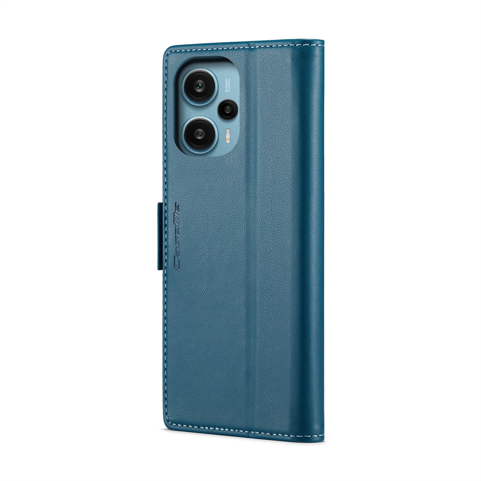 Xiaomi Poco F5 5G Litchi Texture RFID Anti-theft Leather Phone Case with Butterfly Buckle, Stand & Card Wallet with TPU Shell