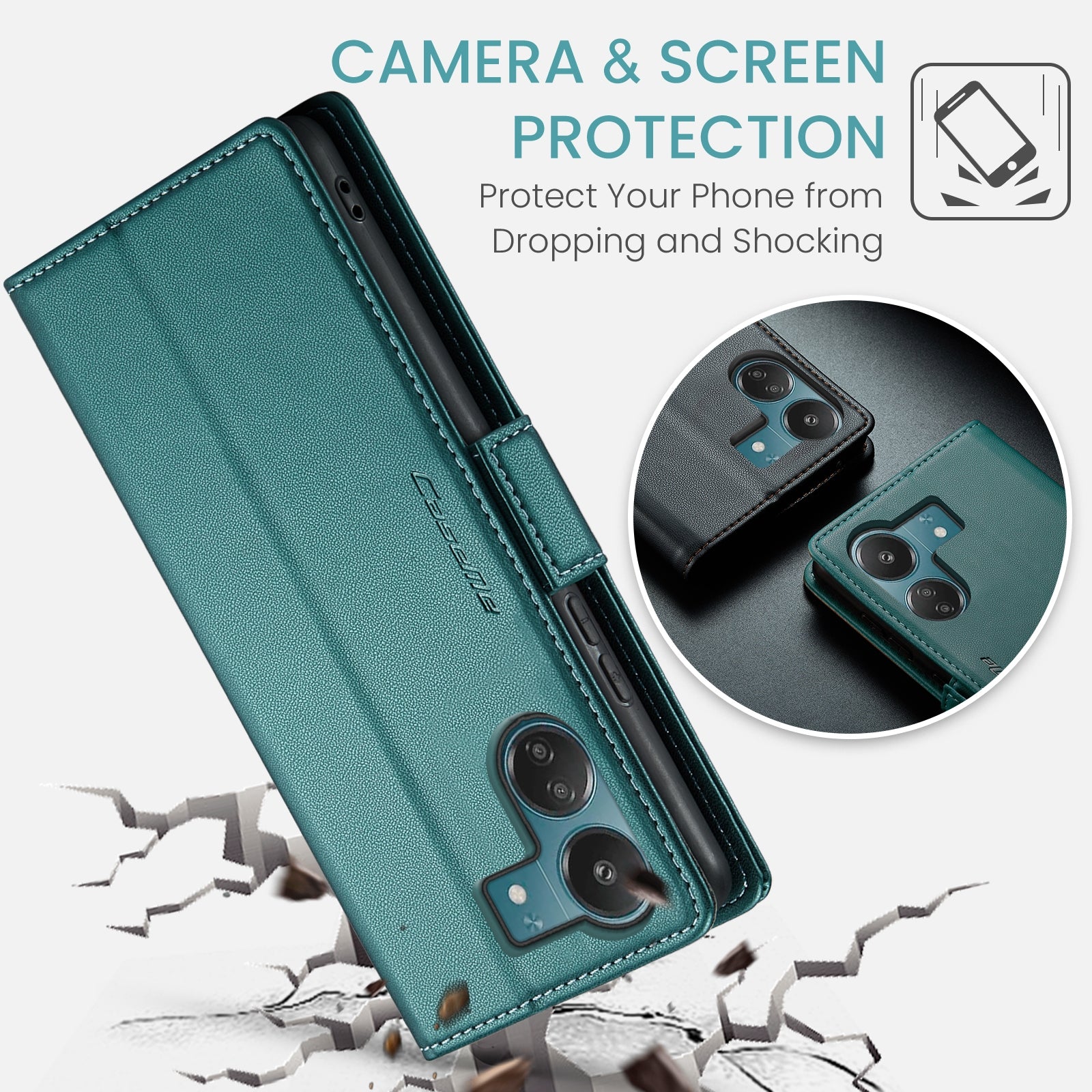 Experience premium protection and modern style with this Xiaomi Redmi 13C 4G/5G Litchi Texture RFID Anti-theft Leather Phone Case. The butterfly buckle closure, convenient wallet features, and stand design blend both fashion and function for your daily life.